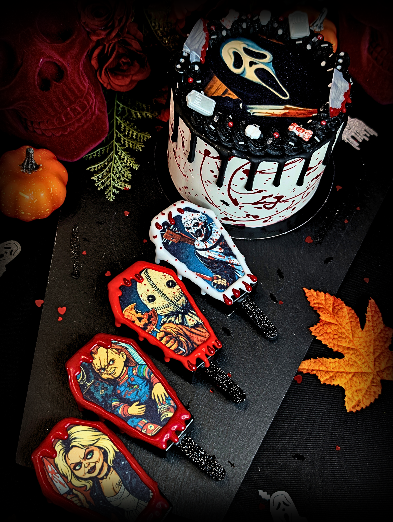 Whether you’re inspired by horror icons, cult films, TV shows, music legends, or your favourite pop-culture moments, each box is created to capture the vibe of your celebration. Dark and dramatic, playful and nostalgic, or something completely unique — no two boxes are ever the same.